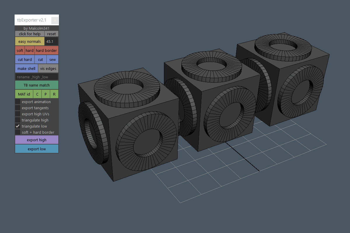 Speed up exporting meshes for baking in Marmoset Toolbag or Substance Painter. Normals editing, naming, material ids, and more in Autodesk Maya.