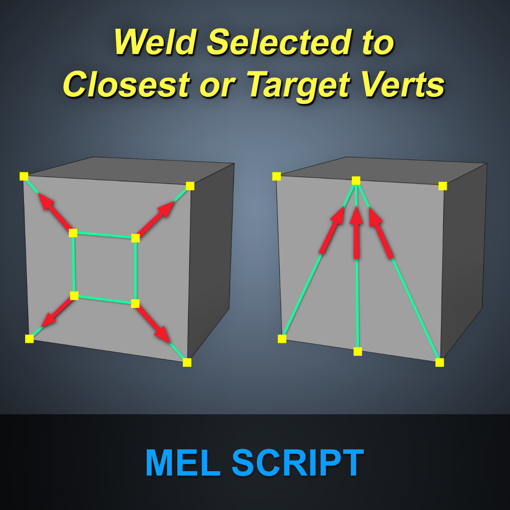 Weld selected components to closest or target vertices. Tedious target welding made easy in Autodesk Maya.