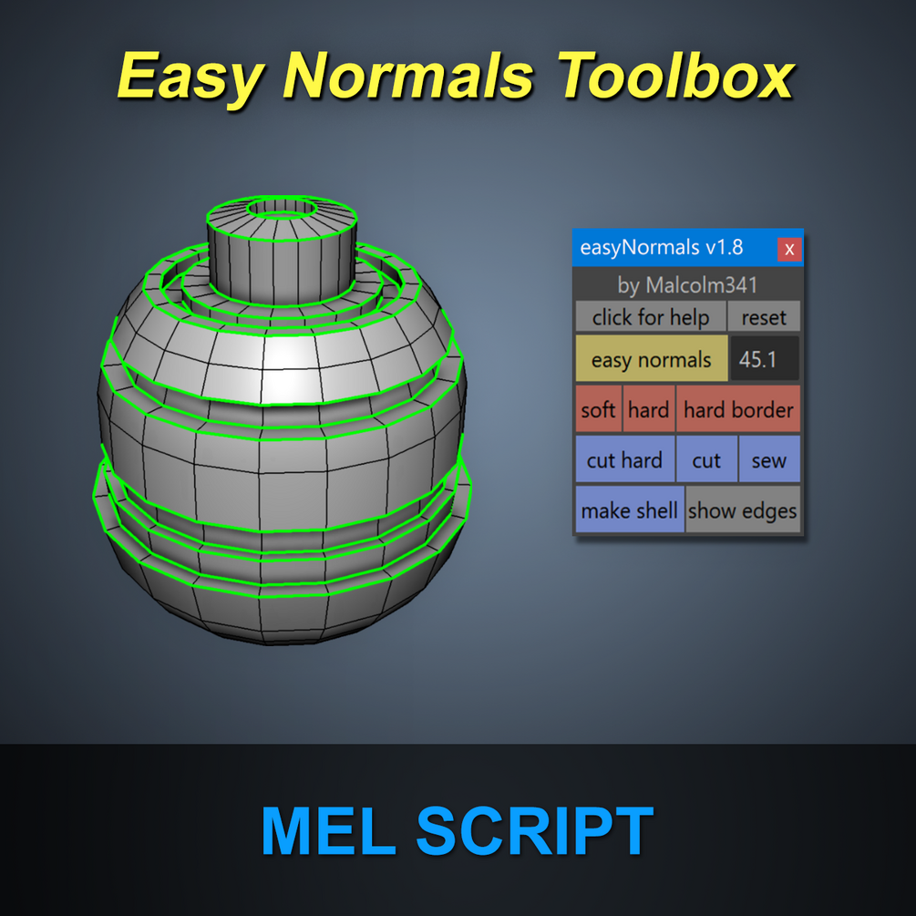 Set normals automatically for baking using a tolerance angle. Great for baking complex normal maps that require a combination of soft and hard edges without needing to set the normals yourself in Autodesk Maya.