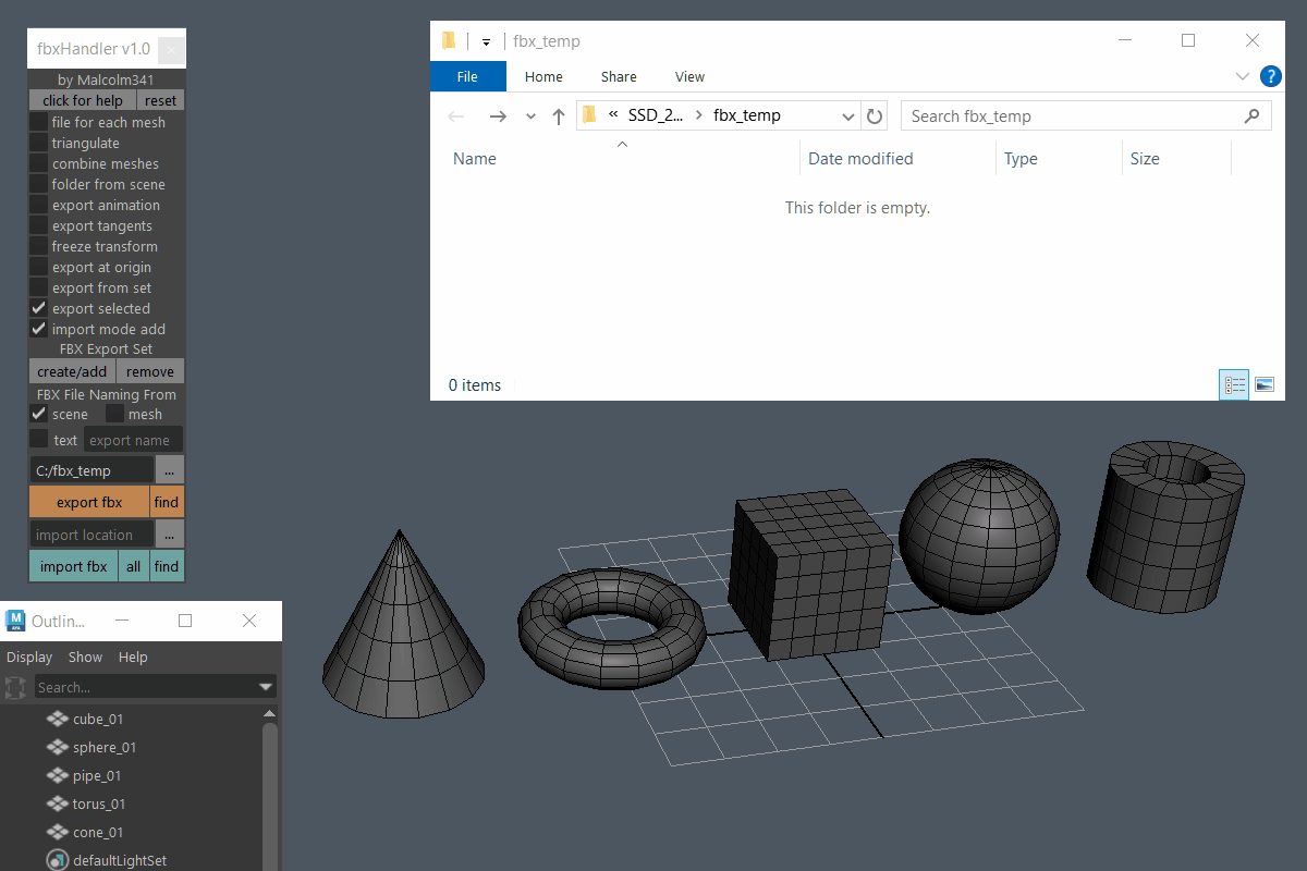 Speeds up exporting meshes as .fbx for use with applications like Unreal and Unity. Export each mesh as a separate file, move to origin, freeze transform, folder from scene name, combine meshes, and more.